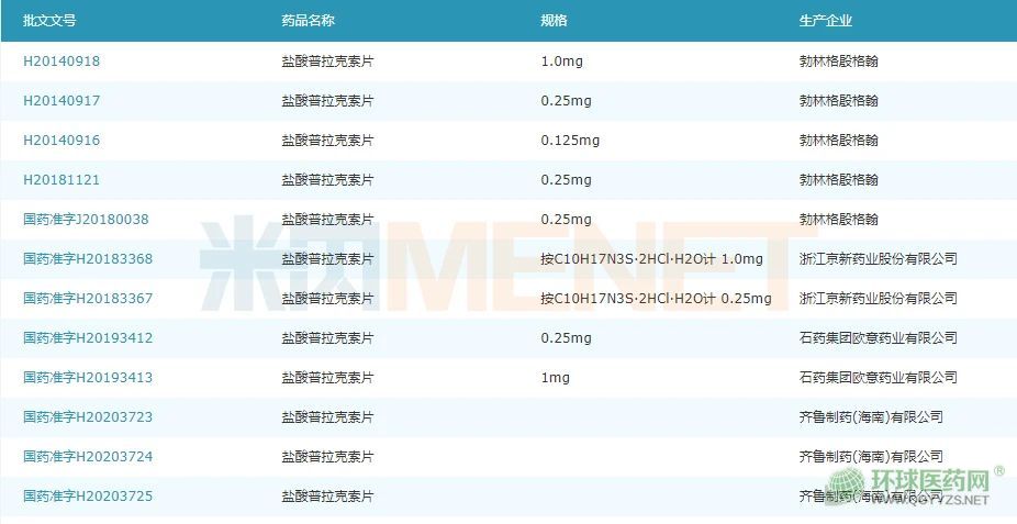 鹽酸普拉克索片國內第三家