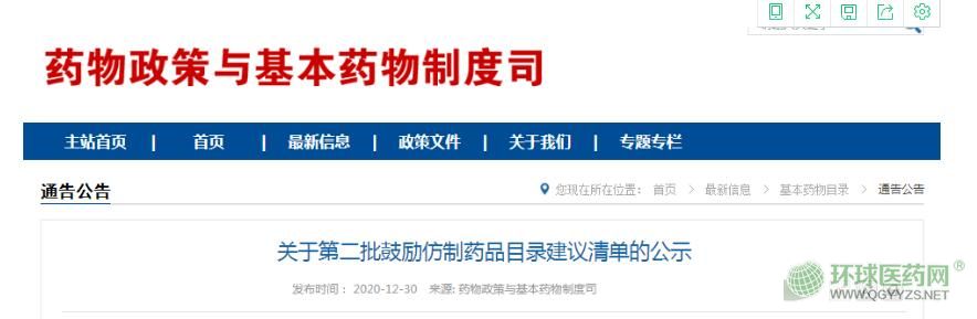 為落實國務院辦公廳《關于改革完善仿制藥供應保障及使用政策的意見》和《關于印發(fā)深化醫(yī)藥衛(wèi)生體制改革2020年下半年重點工作任務的通知》有關制定鼓勵仿制藥品目錄的部署和要求,國家衛(wèi)生健康委聯(lián)合科技部、工業(yè)和信息化部、醫(yī)保局、知識產(chǎn)權局、藥監(jiān)局等部門組織專家對2021年至2022年專利即將到期的藥品進行遴選論證,提出了《第二批鼓勵仿制藥品目錄建議清單》,F(xiàn)予以公示,公示期為5個工作日。