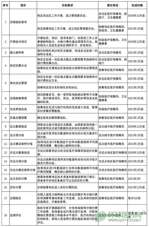 2021年1月底前制定全區(qū)統(tǒng)一的區(qū)域點數(shù)法總額預算和按病種分值付費結(jié)算辦法;3月根據(jù)各統(tǒng)籌地區(qū)技術(shù)準備和配套政策制訂情況,具備條件的地區(qū)備案后可以啟動實際付費;12月底前全部統(tǒng)籌地區(qū)進入實際付費階段……