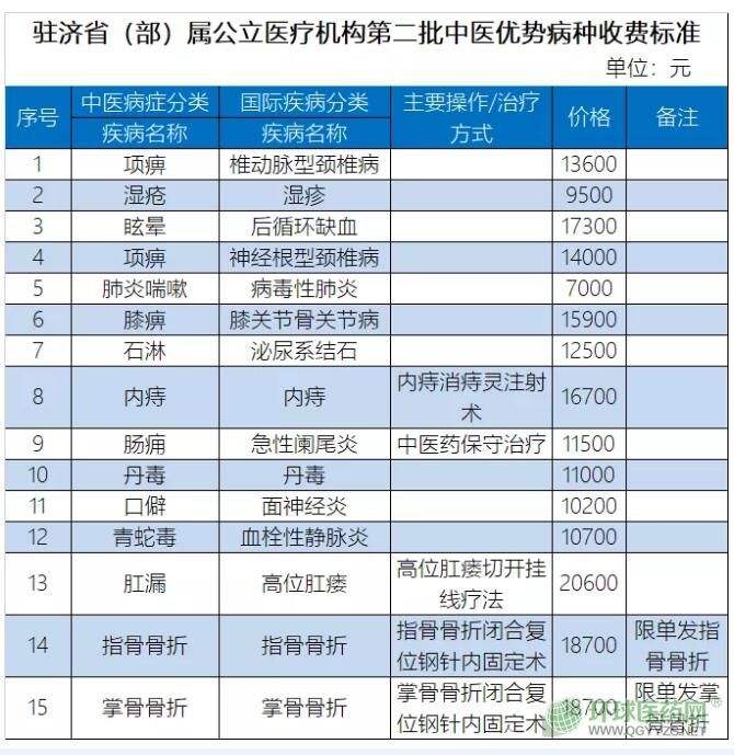 2014年初,山東省在濟寧和威海開始試點按中醫(yī)優(yōu)勢病種收費方式改革,第一批將肱骨髁上骨折、橈骨遠端骨折等中醫(yī)優(yōu)勢病種納入醫(yī)保按病種收付費范圍,目前公布的是第二批。