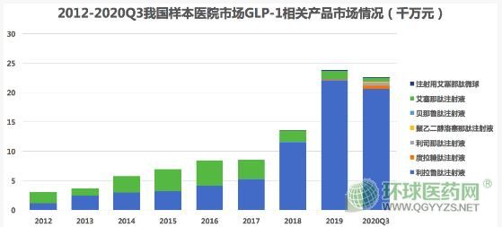 藥物綜合數(shù)據(jù)庫(PDB)顯示,在我國GLP-1樣本醫(yī)院中,由于短效GLP-1上市較早,其市場份額占據(jù)主導。其中,利拉魯肽注射液市場份額增長最快,從2012年的37%上升至2020年Q1-3的91%。