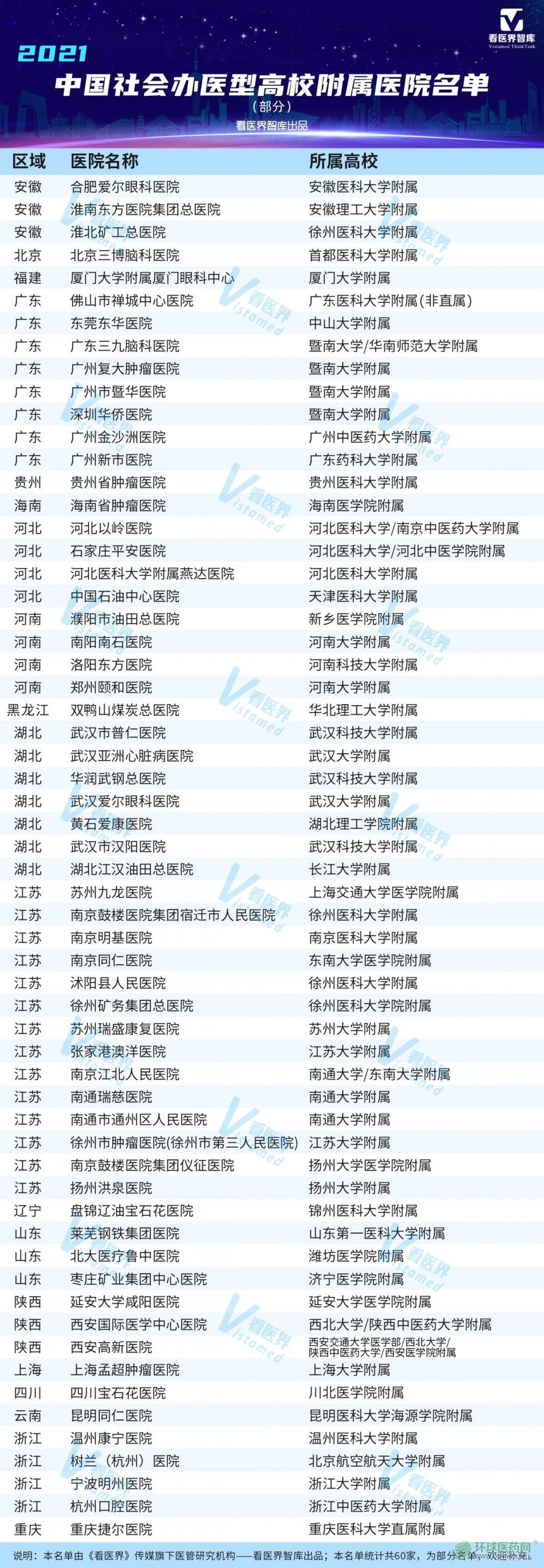 注:本表數(shù)據(jù)首要來源為各醫(yī)院官網(wǎng)(截止2021年1月31),此外還來源于媒體報道、醫(yī)院官宣文等途徑。還有哪些社會辦醫(yī)療機構成為了高校附屬醫(yī)院?歡迎在文末留言補充。