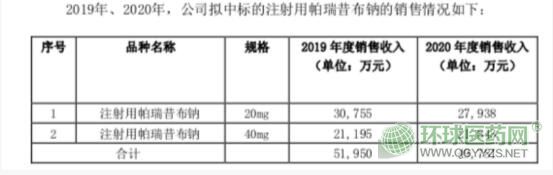 據(jù)上海陽(yáng)光采購(gòu)網(wǎng)公布的擬中選結(jié)果顯示,帕瑞昔布注射劑共有10家企業(yè)擬中選,中標(biāo)價(jià)為2-6元/瓶不等,峨眉山通惠制藥報(bào)價(jià)最低,為2.98元?苽悶樵撈贩N國(guó)內(nèi)首仿,于2020年11月才通過一致性評(píng)價(jià),科倫40mg報(bào)價(jià)5.64元,以第9順位壓線中選,供應(yīng)區(qū)域?yàn)楹、寧夏、新疆(含兵團(tuán)) 。據(jù)科倫公告顯示,其擬中標(biāo)的帕瑞昔布注射劑(20mg+40mg )2019年銷售收入51950萬元,2020年銷售額為49781萬元。