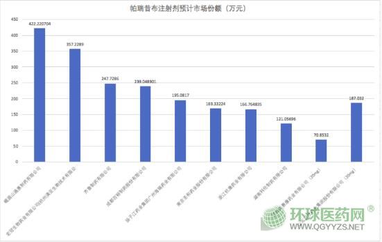 帕瑞昔布是一種選擇性環(huán)氧化酶-2抑制劑,主要用于術(shù)后疼痛的治療,是臨床多模式鎮(zhèn)痛的基礎(chǔ)用藥之一。注射用帕瑞昔布鈉既可靜脈注射,又可肌肉注射,可有效滿足術(shù)后鎮(zhèn)痛需快速起效和患者無法進(jìn)食的臨床需求,廣泛用于普通外科、婦科、骨科、口腔科等多個(gè)科室術(shù)后疼痛的治療。除原研藥企輝瑞外,該藥40mg品規(guī)過評(píng)企業(yè)中,齊魯、羅欣、海正、苑東、奧賽康等知名藥企均在其列。帕瑞昔布注射液2019年公立醫(yī)院終端銷售額為19.94億元,同比增長(zhǎng)54.7%。其中,輝瑞與科倫占據(jù)當(dāng)前帕瑞昔布注射劑市場(chǎng)份額的主導(dǎo)地位,科倫藥業(yè)該藥銷售額達(dá)5.19億元,占比26%。