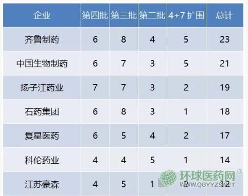 據(jù)賽柏藍(lán)統(tǒng)計(jì),目前國家集采已先后進(jìn)行四批,多家國內(nèi)藥企從中脫穎而出,累計(jì)超過10個(gè)品種成功中選,其中最多的是齊魯制藥,已有 23 個(gè)品種在四批國家集采中中選。