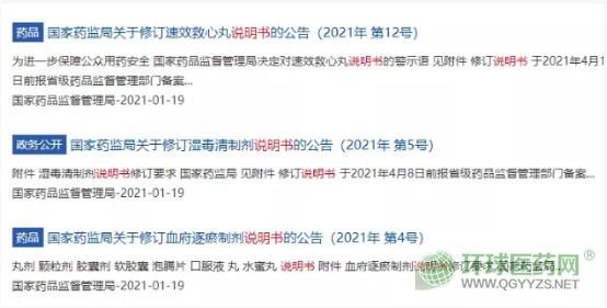 事實(shí)上,除六味地黃制劑以外,自2021年到現(xiàn)在,國(guó)家藥監(jiān)局已發(fā)布的15份說(shuō)明書(shū)修訂方面公告中有8份為中藥相關(guān),并涉及速效救心丸、血府逐瘀制劑等藥物。