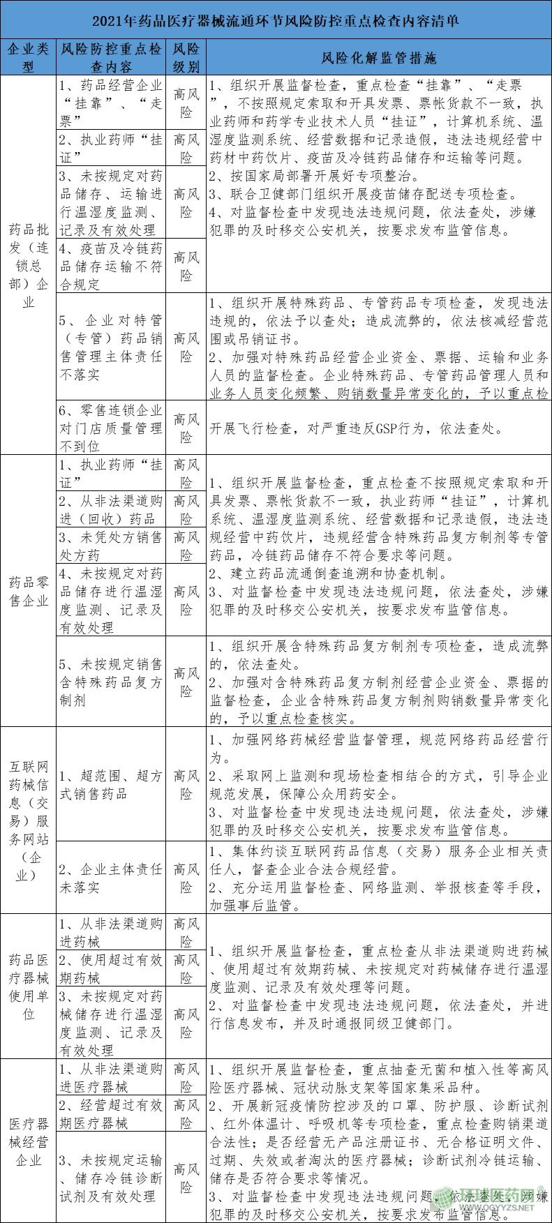 附:2021年藥品醫(yī)療器械流通環(huán)節(jié)風(fēng)險(xiǎn)防控重點(diǎn)檢查內(nèi)容清單