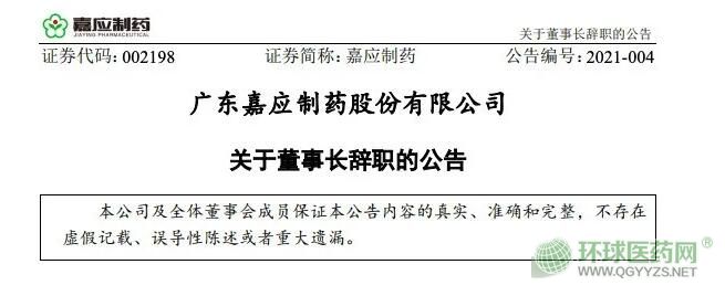 2月25日,嘉應(yīng)制藥發(fā)布公告稱(chēng),收到公司董事長(zhǎng)陳建寧先生提交的書(shū)面辭職報(bào)告。