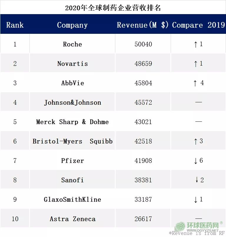 從上述表格中,我們可以看出,排名前三的為羅氏、艾伯維及諾華: