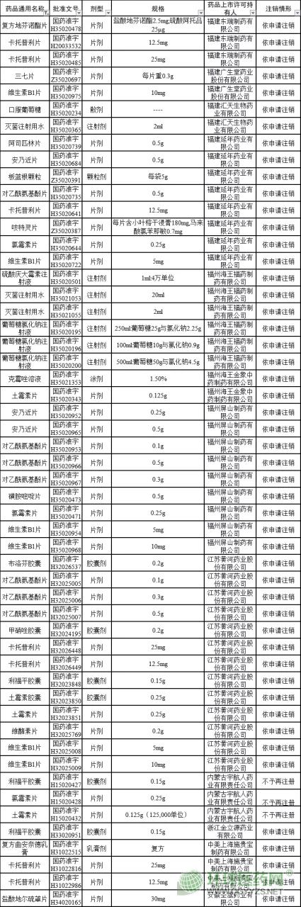 據(jù)了解,共有18家藥企的226個藥品注冊證書被公示注銷:主要涉及江蘇黃河藥業(yè)股份有限公司、 福州海王福藥制藥有限公司、福建廣生堂藥業(yè)股份有限公司、福州屏山制藥有限公司、福建延年藥業(yè)有限公司、福建東瑞制藥有限公司、內(nèi)蒙古宇航人藥業(yè)有限責(zé)任公司、中美上海施貴寶制藥有限公司等。