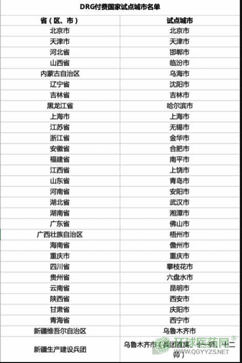 2020年11月4日,國家醫(yī)保局網站公布《國家醫(yī)療保障局辦公室關于印發(fā)區(qū)域點數(shù)法總額預算和按病種分值付費試點城市名單的通知》,27個。ㄖ陛犑校71個城市納入DIP付費試點,分別為: