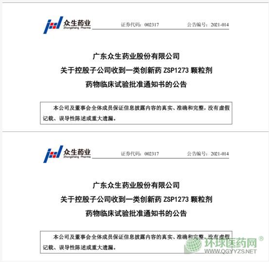 近日,廣東眾生藥業(yè)發(fā)布公告稱,控股子公司眾生睿創(chuàng)收到一類創(chuàng)新藥ZSP1273顆粒劑藥物臨床試驗批準(zhǔn)通知書。