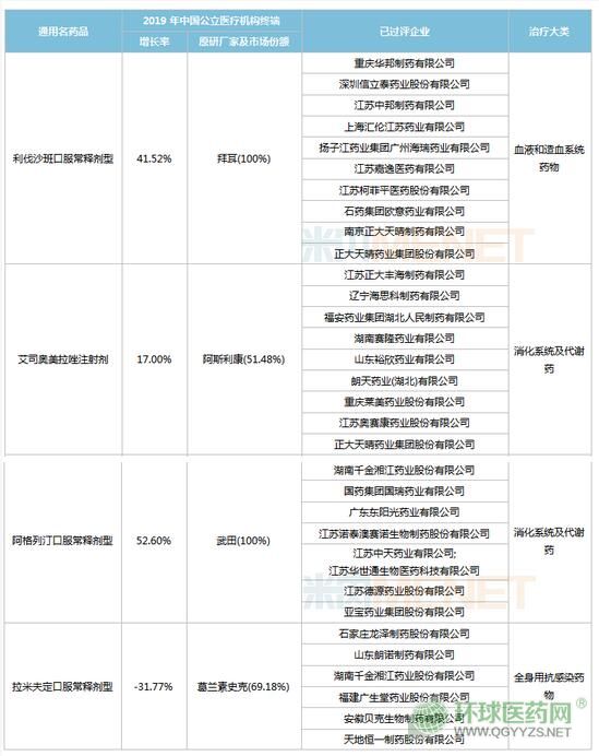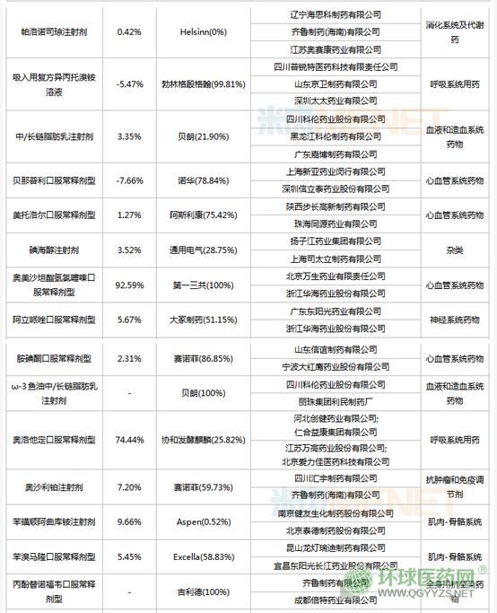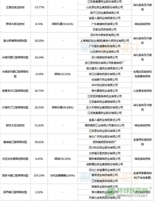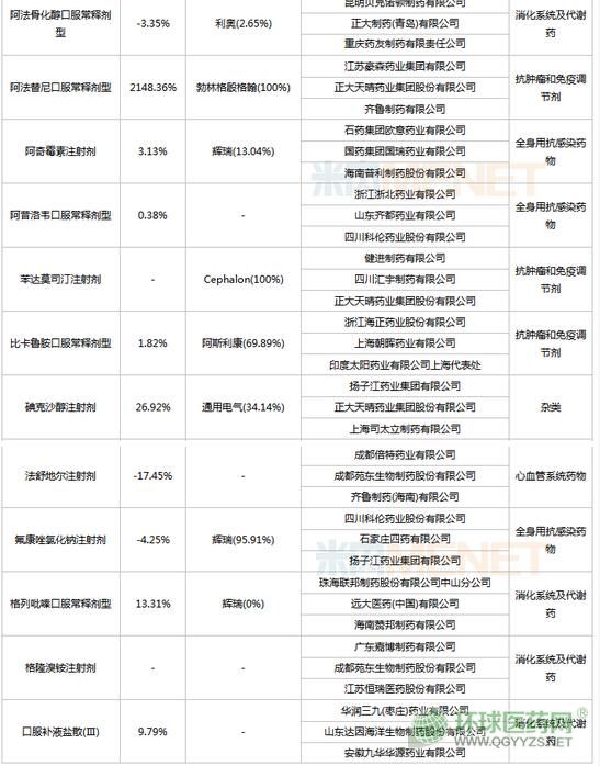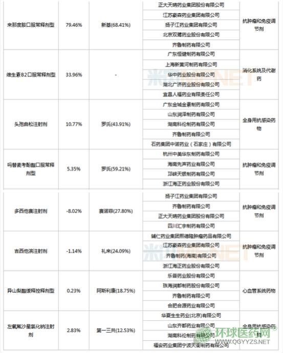 此外,賽諾菲涉及3個(gè)原研藥品——多西他賽注射劑、奧沙利鉑注射劑、胺碘酮口服常釋劑型;羅氏涉及兩個(gè)原研藥品——頭孢曲松注射劑、嗎替麥考酚酯口服常釋劑型;默沙東涉及3個(gè)原研藥品——氯沙坦氫氯噻嗪口服常釋劑型、西格列汀二甲雙胍口服常釋劑型、西格列汀口服常釋劑型;葛蘭素史克涉及3個(gè)原研藥品——拉米夫定口服常釋劑型、頭孢呋辛注射劑、頭孢他啶注射劑。