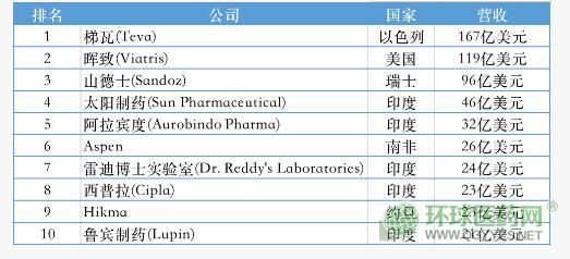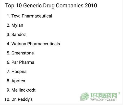 而2010年,美國知名媒體fierce pharma也曾公布過當(dāng)年十大仿制藥公司的排行: