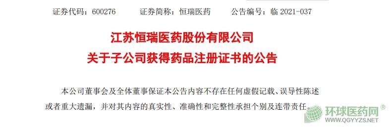 4月6日,江蘇恒瑞醫(yī)藥股份有限公司(以下簡稱“公司”或“恒瑞醫(yī)藥”)公告,其子公司成都盛迪醫(yī)藥有限公司(以下簡稱“成都盛迪”)近日收到國家藥品監(jiān)督管理局核準簽發(fā)的關于麥考酚鈉腸溶片的《藥品注冊證書》。