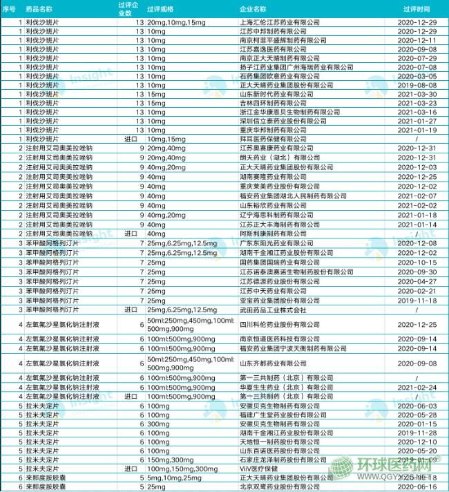 利伐沙班片過評企業(yè)數(shù)為13家,注射用艾司奧美拉唑鈉有9家企業(yè)過評,苯甲酸阿格列汀片共有7家企業(yè)過評,左氧氟沙星氯化鈉注射液、拉米夫定片過評6家,來那度胺膠囊、注射用頭孢曲松鈉、注射用頭孢他啶過評5家,這都是集采的熱門選擇品種,也因為參與企業(yè)較多而面臨大幅降價的局面。