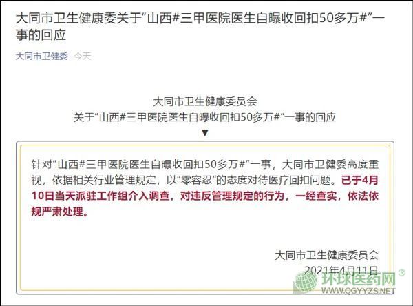 4月11日上午,大同市衛(wèi)健委回應稱,已派駐工作組介入調(diào)查。