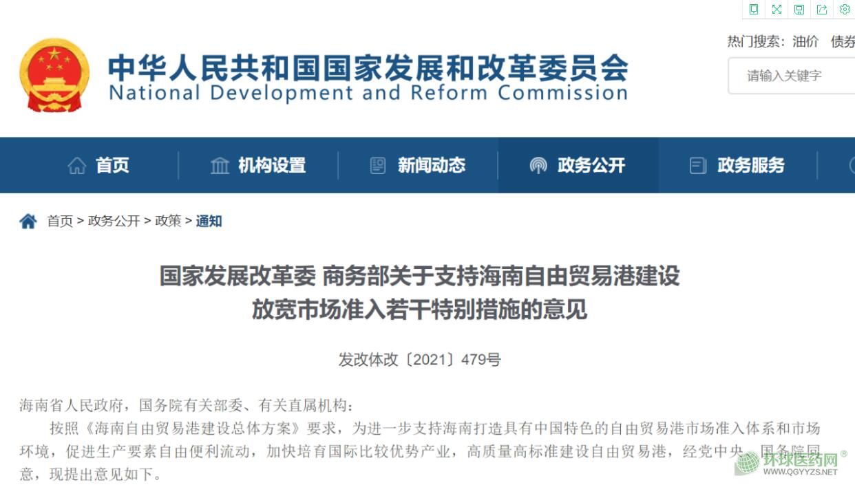 日前,國家發(fā)展改革委牽頭,會同商務(wù)部、海南省等制定《關(guān)于支持海南自由貿(mào)易港建設(shè)放寬市場準(zhǔn)入若干特別措施的意見》(以下簡稱《特別措施》),4月8日,國家發(fā)改委召開新聞發(fā)布會,介紹《特別措施》有關(guān)情況。國家發(fā)展改革委體改司司長徐善長表示,將放寬文化、醫(yī)療、教育等行業(yè)準(zhǔn)入準(zhǔn)營門檻,特別是在網(wǎng)售處方藥等領(lǐng)域作出開拓性探索。