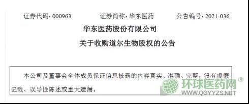 華東醫(yī)藥宣布以 4.875 億元人民幣收購(gòu)浙江道爾生物科技有限公司 75% 股權(quán),成為其控股股東。交易完成后,華東醫(yī)藥成為其第一大股東。