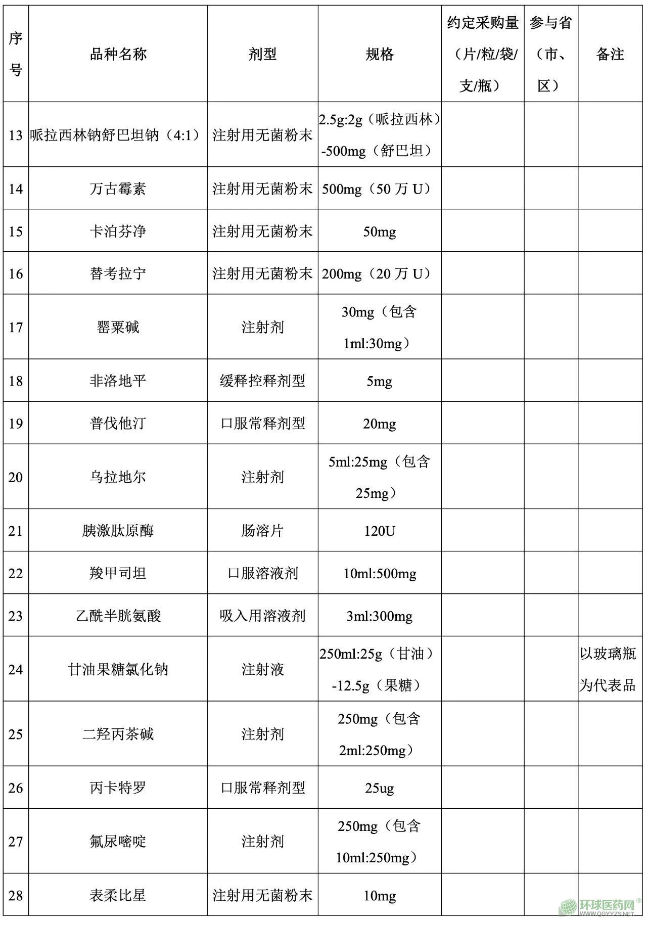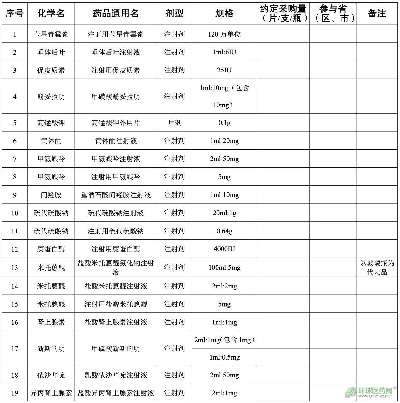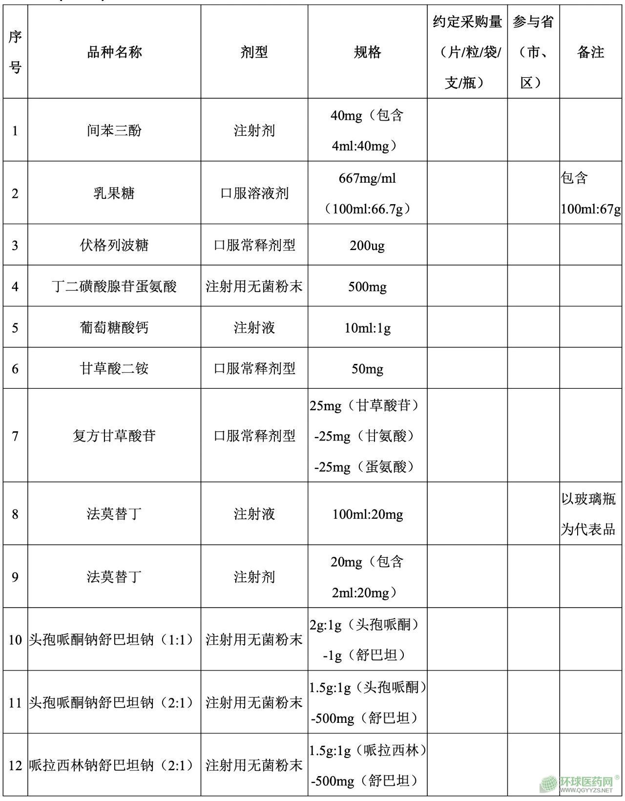 渝豫桂瓊滇青寧新新疆兵團(tuán)短缺藥品聯(lián)盟采購(gòu)品種目錄