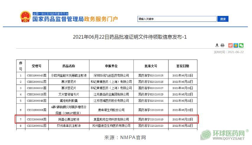 根據(jù)中國(guó)國(guó)家藥監(jiān)局(NMPA)最新公示,復(fù)星凱特CAR-T細(xì)胞治療產(chǎn)品阿基侖賽注射液(又稱:益基利侖賽注射液,代號(hào):FKC876)已正式獲得批準(zhǔn)。這意味著中國(guó)迎來(lái)首款獲批上市的CAR-T細(xì)胞治療產(chǎn)品。