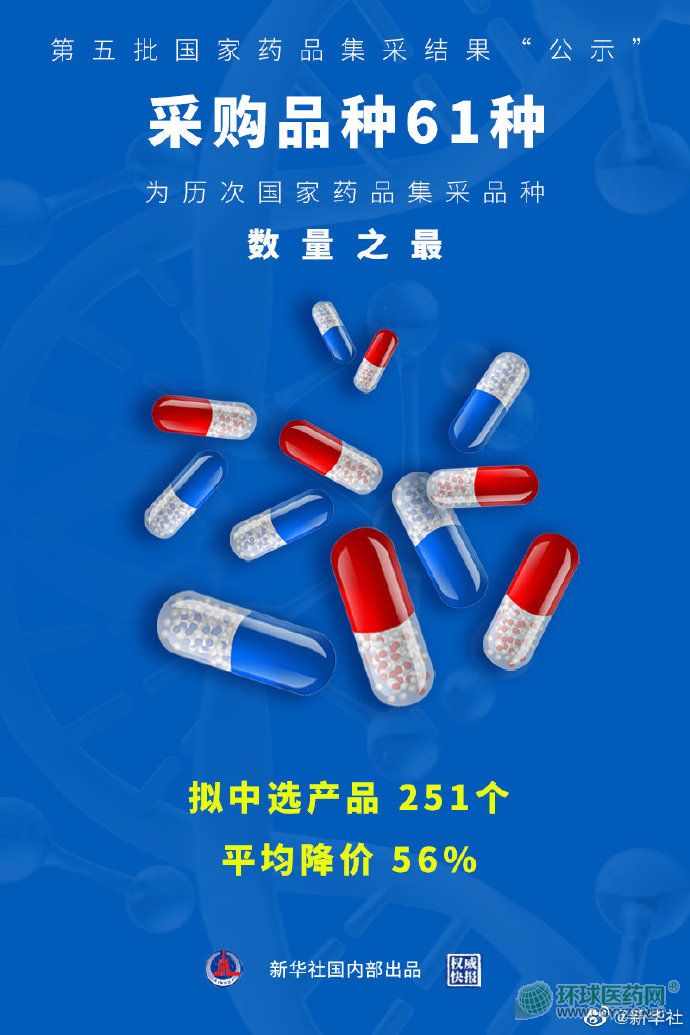國家再次“團(tuán)購”藥品,實(shí)現(xiàn)以量換價。#第五批國家藥品集采擬中選產(chǎn)品251個#,藥品品種達(dá)到61種,為歷次國家藥品集采品種數(shù)量最多的一次,擬中選藥品平均降價56%。此次集采品種覆蓋高血壓、冠心病、糖尿病、抗過敏、抗感染、消化道疾病等常見病、慢性病用藥。(記者彭韻佳、龔雯;海報設(shè)計:張晨光)