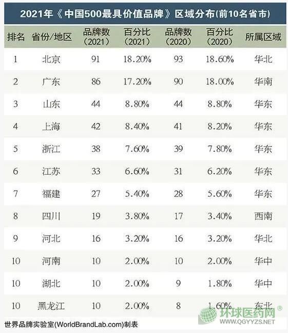▍中國500最具價值品牌區(qū)域分布