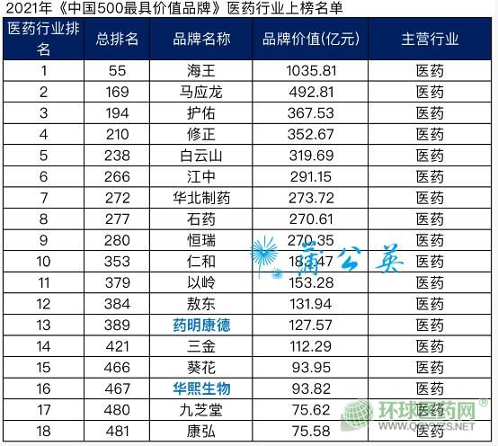醫(yī)藥行業(yè)品牌價值前10名,與2020年相比在總榜排名變化方面: