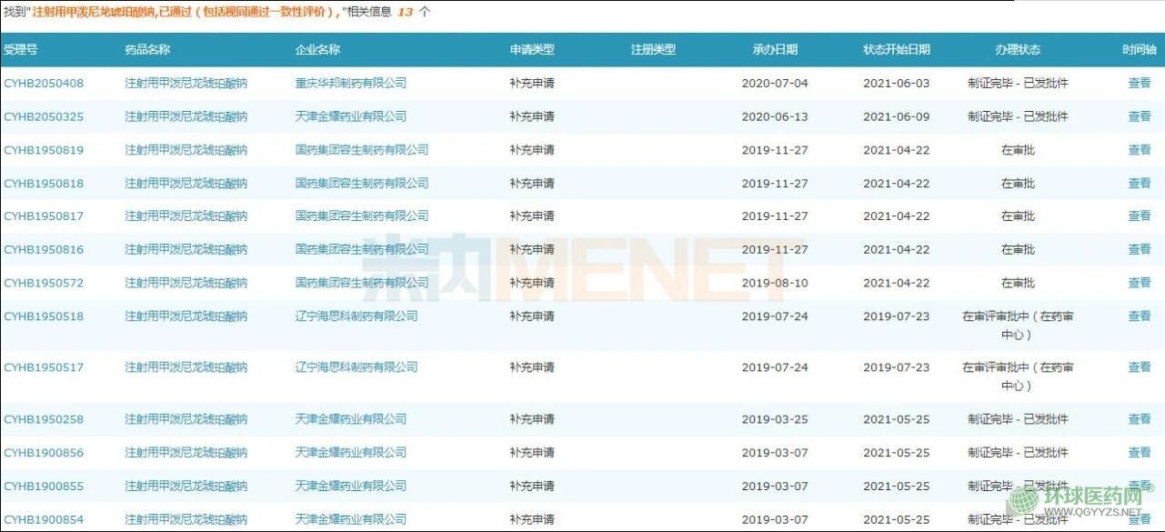 目前,注射用甲潑尼龍琥珀酸鈉已有國藥容生制藥、天津金耀藥業(yè)、遼寧海思科制藥、重慶華邦制藥4家企業(yè)以補(bǔ)充申請獲批過評。其中,天津金耀藥業(yè)此前已有4個規(guī)格獲批過評,1.0g和2.0g兩個規(guī)格是首家過評,500mg規(guī)格是第2家過評,125mg規(guī)格是第3家過評,而此次獲批的40mg規(guī)格是第3家過評。