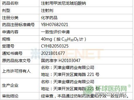 7月1日,天藥股份發(fā)布公告稱,其子公司天津金耀藥業(yè)的注射用甲潑尼龍琥珀酸鈉(40mg規(guī)格)以補(bǔ)充申請獲批過評。在此之前,天津金耀藥業(yè)的注射用甲潑尼龍琥珀酸鈉已有4個規(guī)格獲批過評,其中,1.0g和2.0g兩個規(guī)格是首家過評。米內(nèi)網(wǎng)數(shù)據(jù)顯示,2020年中國公立醫(yī)療機(jī)構(gòu)終端注射用甲潑尼龍琥珀酸鈉銷售額近20億元。