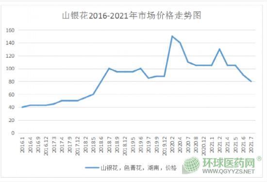 圖1:山銀花2016-2021年市場價格走勢圖