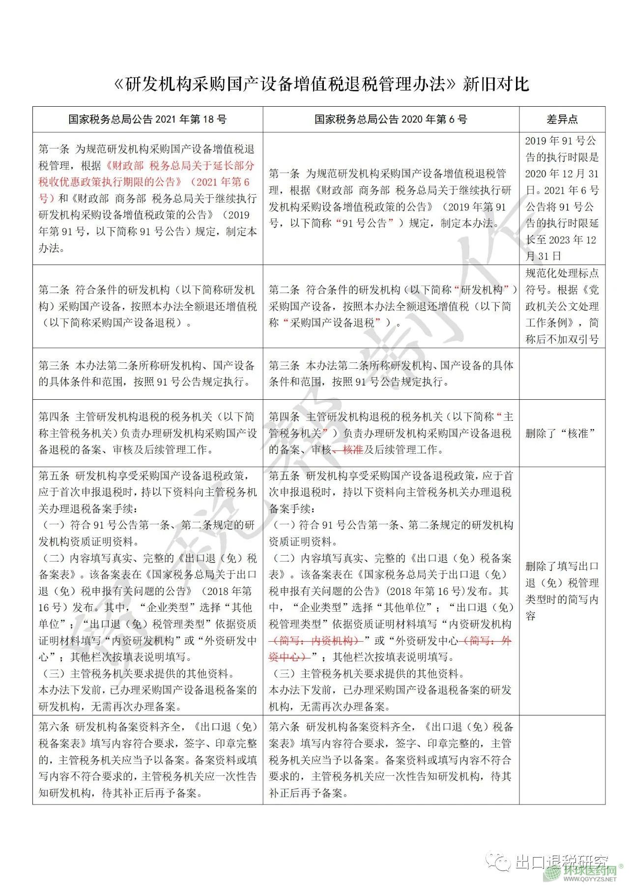 根據(jù)《財(cái)政部 稅務(wù)總局關(guān)于延長(zhǎng)部分稅收優(yōu)惠政策執(zhí)行期限的公告》(2021年第6號(hào),以下簡(jiǎn)稱財(cái)稅6號(hào)公告)和《財(cái)政部 商務(wù)部 稅務(wù)總局關(guān)于繼續(xù)執(zhí)行研發(fā)機(jī)構(gòu)采購(gòu)設(shè)備增值稅政策的公告》(2019年第91號(hào),以下簡(jiǎn)稱91號(hào)公告)的規(guī)定,延長(zhǎng)研發(fā)機(jī)構(gòu)采購(gòu)國(guó)產(chǎn)設(shè)備全額退還增值稅政策的執(zhí)行期限至2023年12月31日。為便于研發(fā)機(jī)構(gòu)辦理國(guó)產(chǎn)設(shè)備退稅,我們修訂發(fā)布了《研發(fā)機(jī)構(gòu)采購(gòu)國(guó)產(chǎn)設(shè)備增值稅退稅管理辦法》(以下簡(jiǎn)稱《辦法》),F(xiàn)解讀如下: