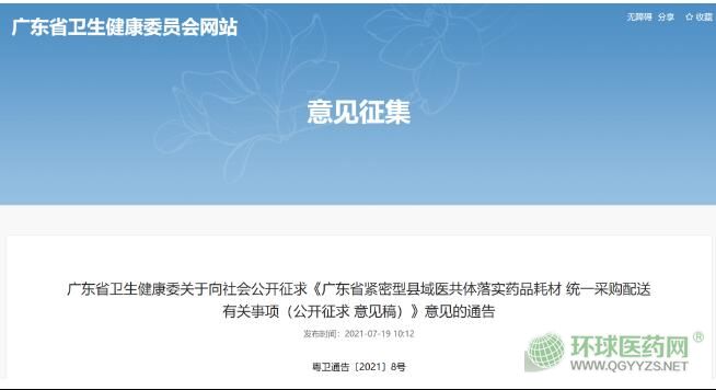 為提高縣域醫(yī)療衛(wèi)生資源配置和使用效率,7月19日,廣東省衛(wèi)健委官網(wǎng)發(fā)布《廣東省緊密型縣域醫(yī)共體落實藥品耗材統(tǒng)一采購配送有關(guān)事項(公開征求意見稿)》(以下簡稱《意見稿》),對其公開征求意見。這份僅有800余字的意見稿,字雖少但信息量大。