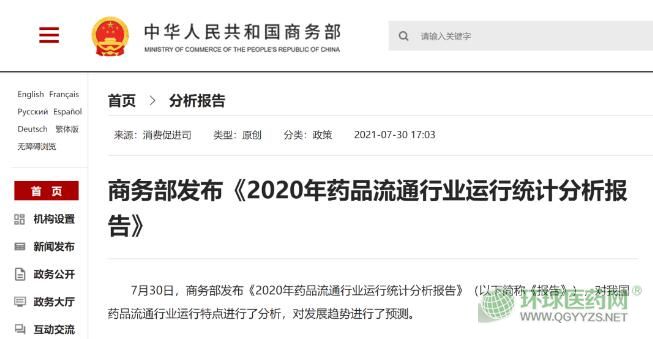 7月30日,商務(wù)部官網(wǎng)發(fā)布《2020年藥品流通行業(yè)運(yùn)行統(tǒng)計(jì)分析報(bào)告》(下稱《報(bào)告》),對(duì)我國(guó)藥品流通行業(yè)的整體規(guī)模、企業(yè)效益、銷售區(qū)域分布所有制結(jié)構(gòu)、醫(yī)藥電商運(yùn)營(yíng)、上市企業(yè)、注冊(cè)執(zhí)業(yè)藥師等十大維度的發(fā)展情況以及運(yùn)行特點(diǎn)進(jìn)行了分析,并對(duì)未來(lái)的發(fā)展趨勢(shì)進(jìn)行了預(yù)測(cè)。