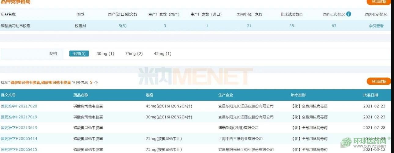 目前,擁有磷酸奧司他韋膠囊生產(chǎn)批文的廠家有羅氏、宜昌東陽光長江藥業(yè)、上海中西三維藥業(yè)、博瑞制藥(蘇州)4家。一致性評價方面,宜昌東陽光長江藥業(yè)是以補充申請獲批,博瑞制藥(蘇州)是以仿制4類獲批,視同過評。此外,該產(chǎn)品還有齊魯制藥(海南)、揚子江藥業(yè)集團、石藥集團歐意藥業(yè)、成都倍特藥業(yè)等超過10家企業(yè)提交上市申請在審評審批中。