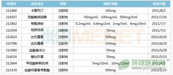 米內(nèi)網(wǎng)數(shù)據(jù)顯示,含卡莫司汀在內(nèi),2021年至今,健友股份已有10個(gè)ANDA在美國獲批,涉及9個(gè)產(chǎn)品,均為注射劑。