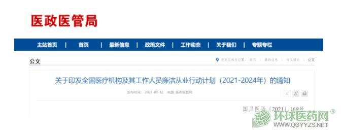 8月12日,國家衛(wèi)健委和中醫(yī)藥管理局聯(lián)合印發(fā)《全國醫(yī)療機構(gòu)及其工作人員廉潔從業(yè)行動計劃(2021-2024年)》(以下簡稱《行動計劃》),決定2021-2024年,在全國醫(yī)療機構(gòu)及其工作人員中實施“廉潔從業(yè)行動計劃”,明確表態(tài)要加大監(jiān)督檢查、執(zhí)紀(jì)執(zhí)法力度,對違反行業(yè)紀(jì)律的醫(yī)務(wù)人員,批評教育一批、通報處理一批、嚴(yán)肅清理一批,對涉嫌利益輸送的各類機構(gòu),嚴(yán)肅懲處、移送線索、行業(yè)禁入,持續(xù)保持對“紅包”、回扣行為的高壓打擊態(tài)勢。