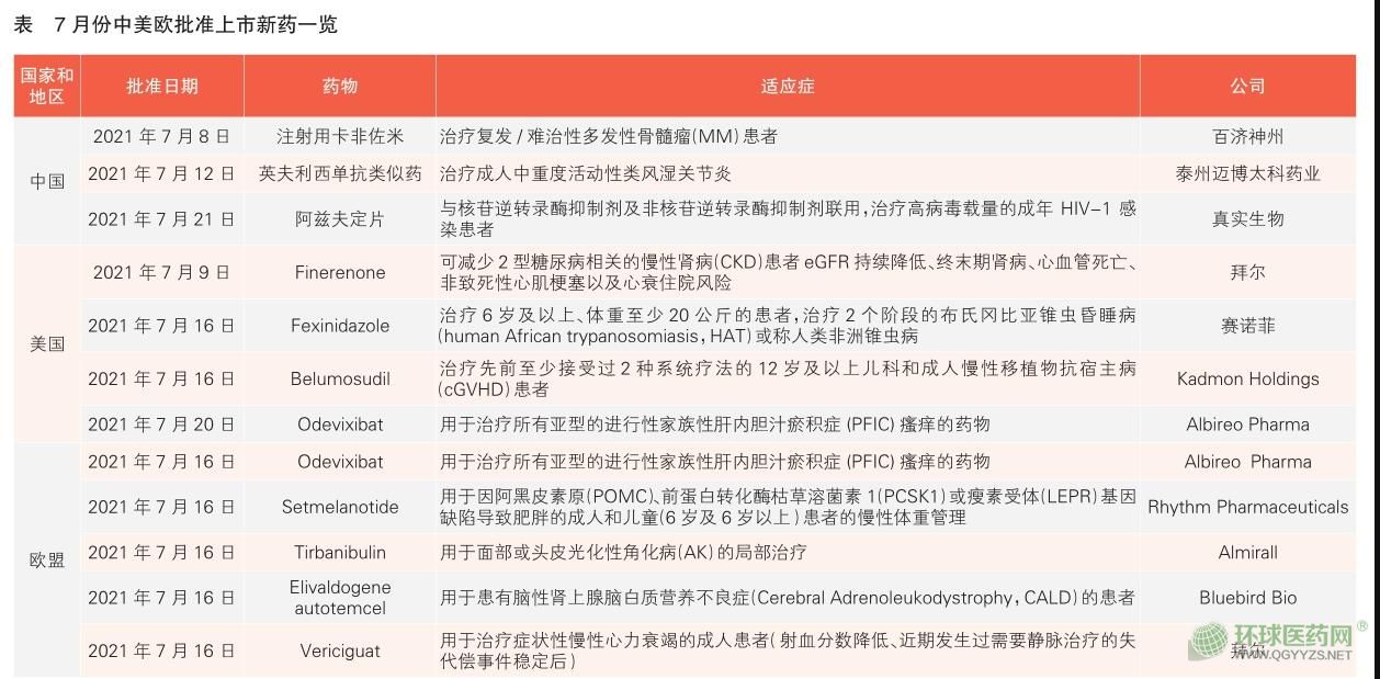 相關(guān)統(tǒng)計(jì)顯示,7月份,中國、美國和歐盟共有12款新藥獲批上市。