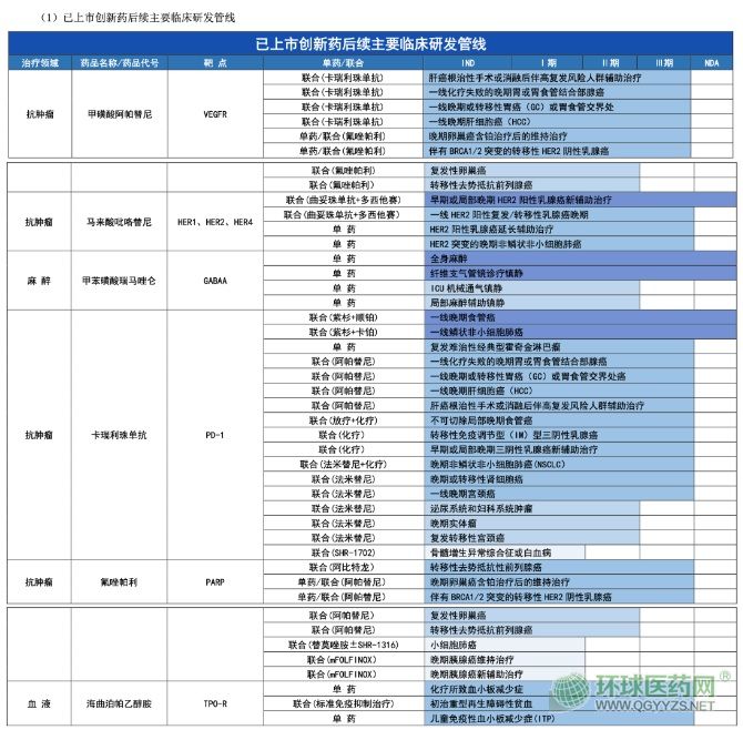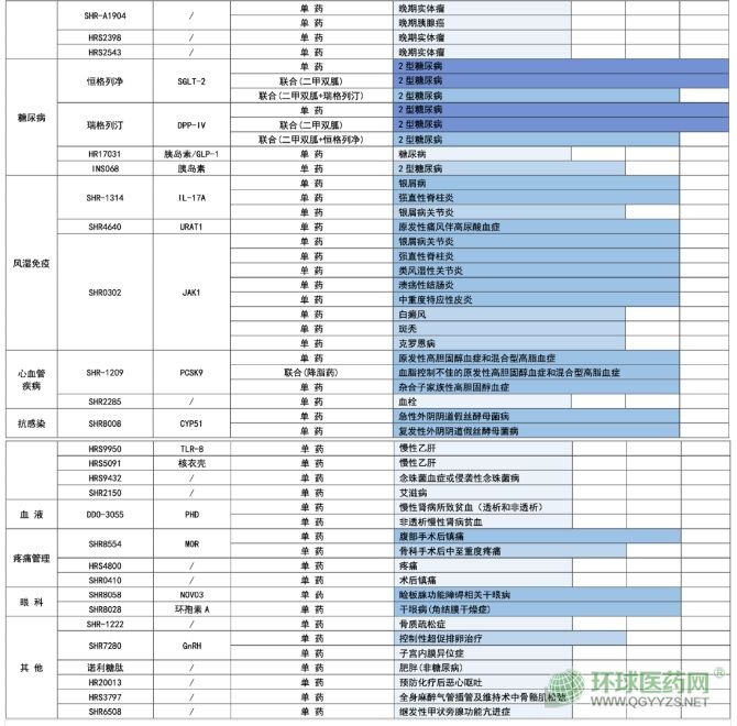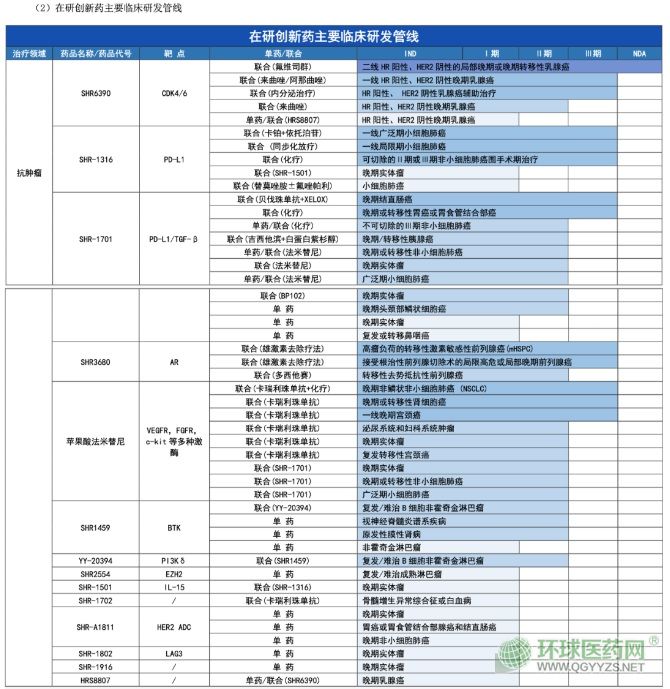 恒瑞半年報(bào)中披露的研發(fā)管線情況