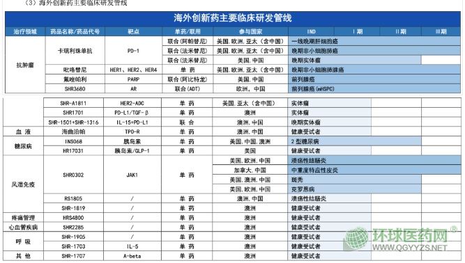 同時(shí),在本次財(cái)務(wù)報(bào)告中,恒瑞醫(yī)藥全面披露了其最新的產(chǎn)品管線,涵蓋已上市創(chuàng)新藥后續(xù)主要臨床研發(fā)管線、在研創(chuàng)新藥主要臨床研發(fā)管線、海外創(chuàng)新藥主要臨床研發(fā)管線,“國(guó)內(nèi)外共開(kāi)展240多個(gè)臨床項(xiàng)目”等信息,引發(fā)業(yè)內(nèi)關(guān)注。