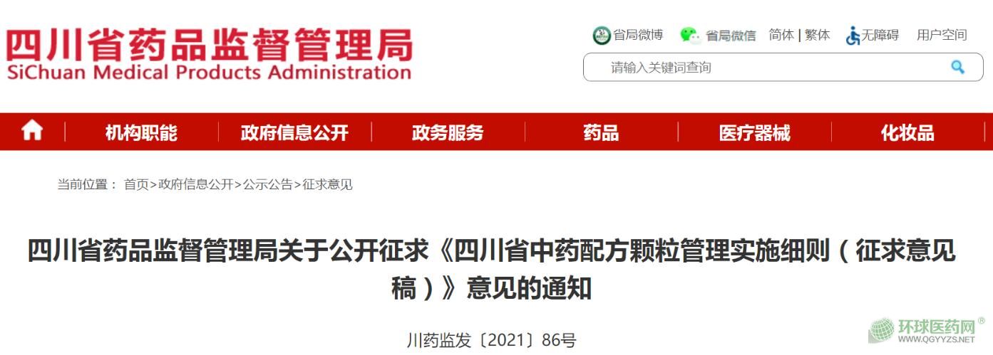 8月19日,四川省藥監(jiān)局發(fā)布關(guān)于公開征求《四川省中藥配方顆粒管理實(shí)施細(xì)則(征求意見稿)》意見的通知。