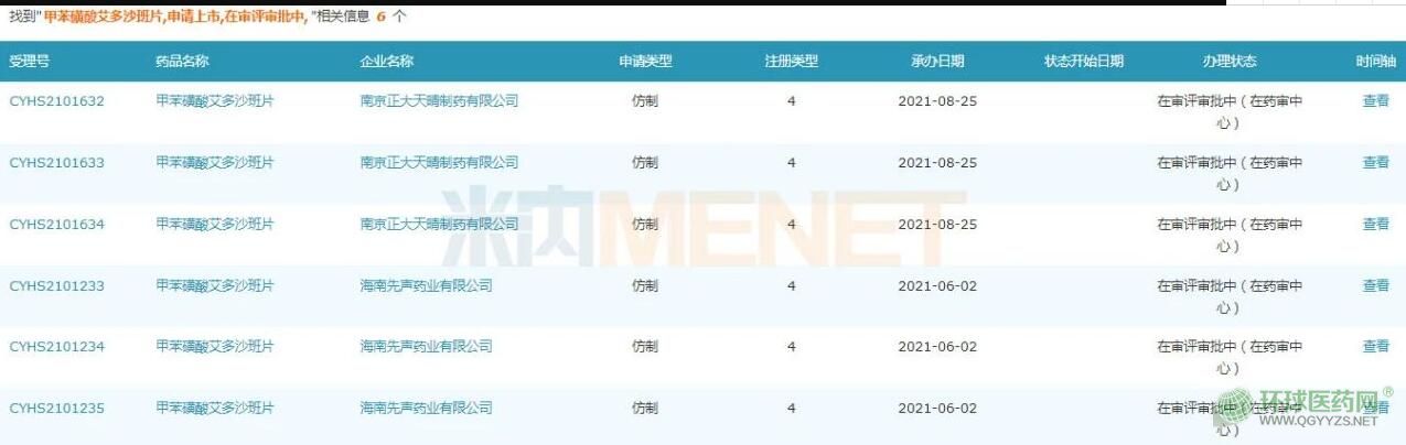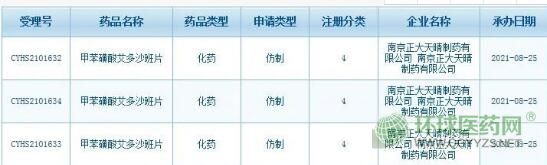 甲苯磺酸艾多沙班片的生產(chǎn)廠家僅有第一三共,目前,該產(chǎn)品有海南先聲藥業(yè)和南京正大天晴兩家企業(yè)以仿制4類提交上市申請,獲批后將視同過評,其中,海南先聲藥業(yè)在今年6月報(bào)產(chǎn),是該產(chǎn)品首家報(bào)產(chǎn)的國內(nèi)企業(yè)。