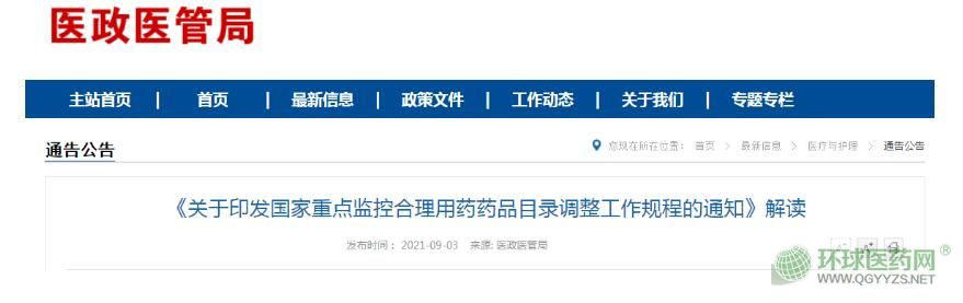 9月3日,國(guó)家衛(wèi)生健康委辦公廳發(fā)布《關(guān)于印發(fā)國(guó)家重點(diǎn)監(jiān)控合理用藥藥品目錄調(diào)整工作規(guī)程的通知》并作出了解讀,該規(guī)程自印發(fā)之日起施行。這意味著新版重點(diǎn)監(jiān)控藥品目錄即將出臺(tái)。