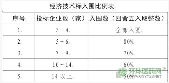 以藥品名稱(chēng)和醫(yī)保合并劑型區(qū)分競(jìng)價(jià)組,對(duì)符合報(bào)名條件的藥品進(jìn)行評(píng)審。同競(jìng)價(jià)組經(jīng)濟(jì)技術(shù)標(biāo)得分70分以上(含)的產(chǎn)品,根據(jù)得分從高到低排名,按比例入圍進(jìn)入商務(wù)標(biāo)和綜合評(píng)審;得分低于70分的,直接淘汰,不進(jìn)入綜合評(píng)審;入圍最后一名得分相同的,同分的全部入圍。入圍企業(yè)不足3家的,按流標(biāo)處理。