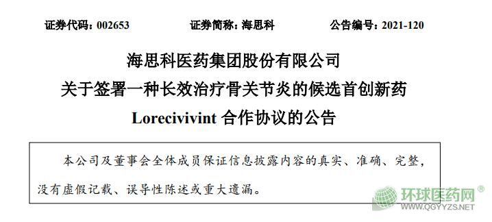 9月14日,海思科宣布與Biosplice Therapeutics簽署了一種長(zhǎng)效治療骨關(guān)節(jié)炎的候選新藥lorecivivint的合作協(xié)議,海思科獲得獨(dú)家負(fù)責(zé)這款新藥在中國(guó)的開發(fā)、注冊(cè)和商業(yè)化活動(dòng)的權(quán)益。根據(jù)公告,這項(xiàng)交易總額最高1.4億美元,包括2000萬美元的首付款和注冊(cè)里程碑付款,以及一定的商業(yè)里程碑付款加上未來銷售的特許權(quán)使用費(fèi)。