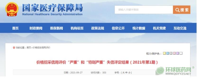 受國(guó)家醫(yī)療保障局委托,國(guó)家醫(yī)療保障局醫(yī)藥價(jià)格和招標(biāo)采購(gòu)指導(dǎo)中心匯總了截至2021年9月18日各省評(píng)級(jí)為“嚴(yán)重”和“特別嚴(yán)重”失信的醫(yī)藥企業(yè)情況,現(xiàn)公示如下。
