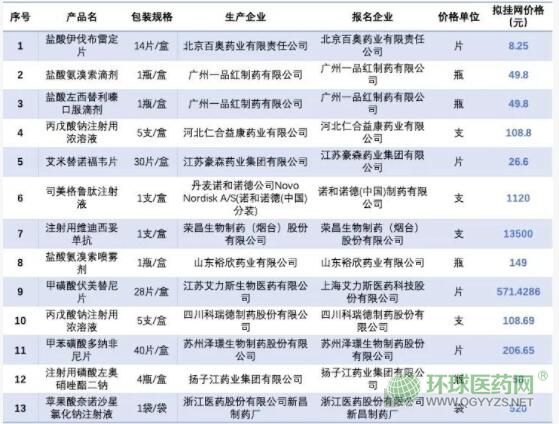 廣東新獲批上市的新品種擬掛網(wǎng)價(jià)格信息公示表(第三批)