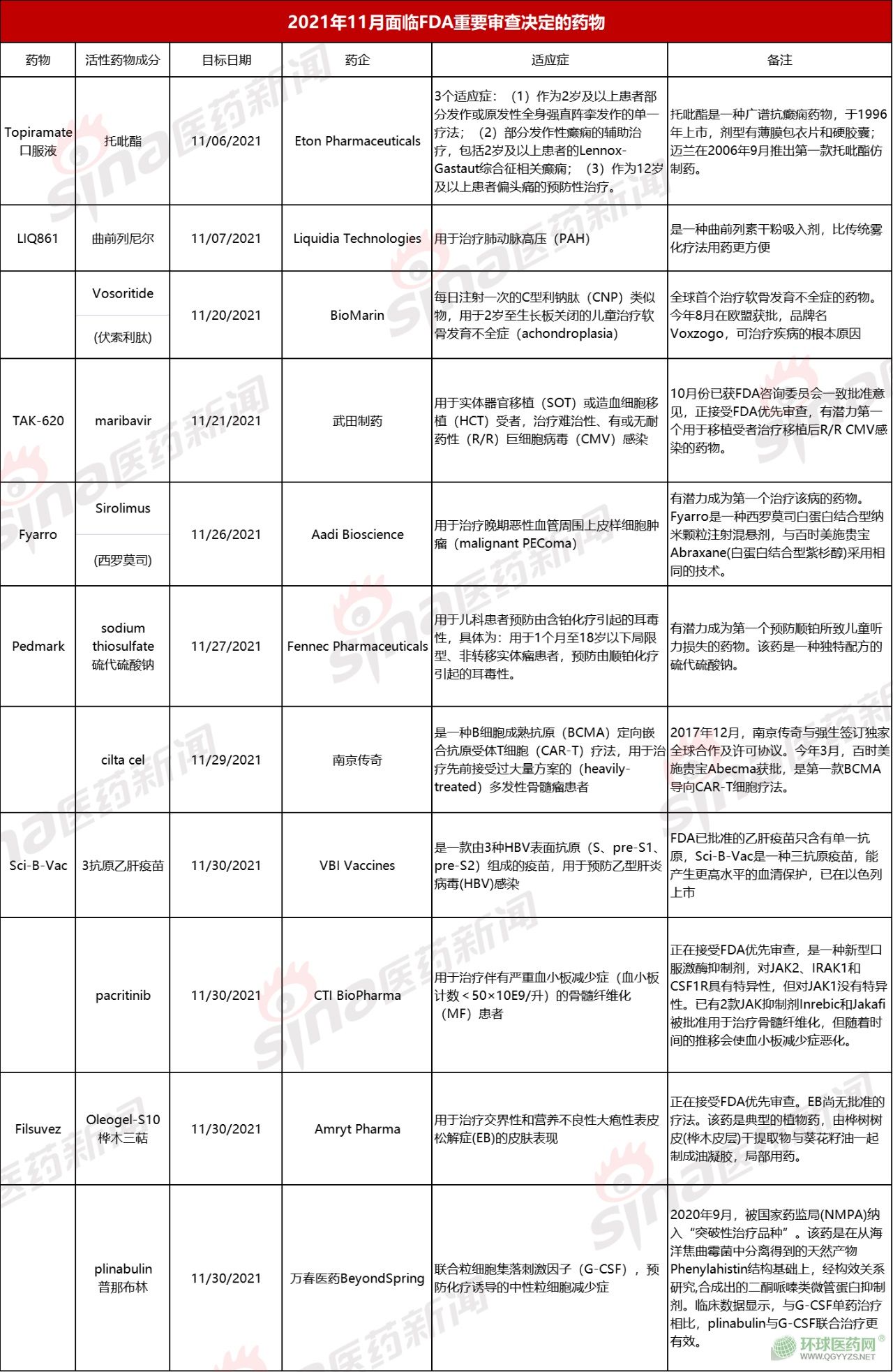 進(jìn)入11月份,有多款藥物將迎來(lái)FDA的重要審查決定。以下對(duì)這些藥物進(jìn)行簡(jiǎn)單匯總: