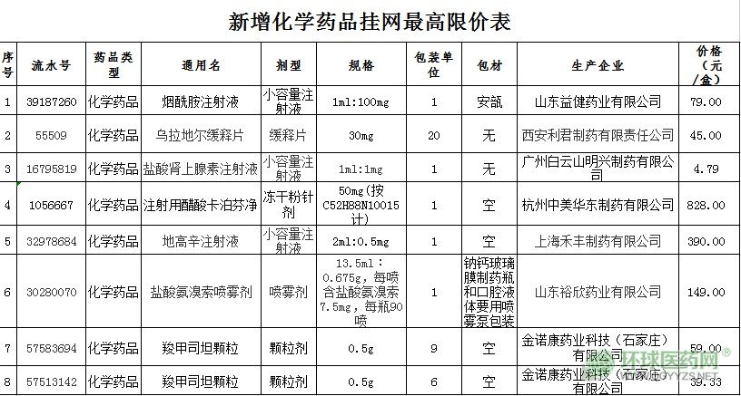 按照《化學(xué)藥品掛網(wǎng)實施方案》(冀醫(yī)采[2020]5號)規(guī)定,現(xiàn)將申報價格不高于同組最低價格化學(xué)藥品進(jìn)行公布并掛網(wǎng)。