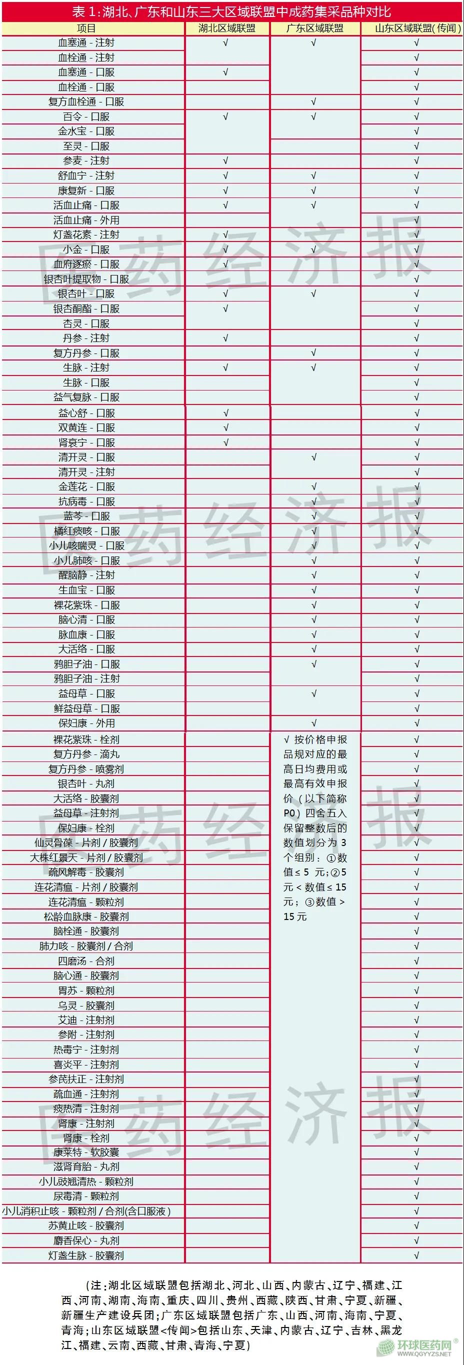 如表1所示,除了新增銀杏葉提取物之外,山東區(qū)域聯(lián)盟(傳聞)中成藥報(bào)量基本上是湖北區(qū)域聯(lián)盟和廣東區(qū)域聯(lián)盟的品種之和,暫時(shí)未知山東區(qū)域聯(lián)盟的分組合并情況。